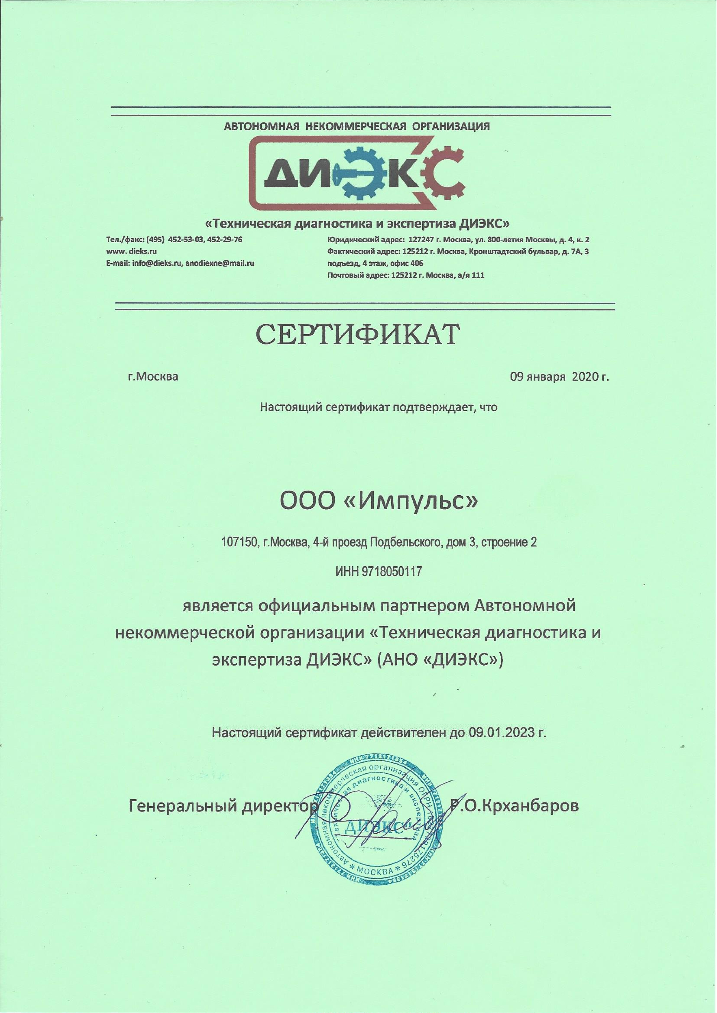 09.01.2020 - Аттестационный центр ООО "Импульс"